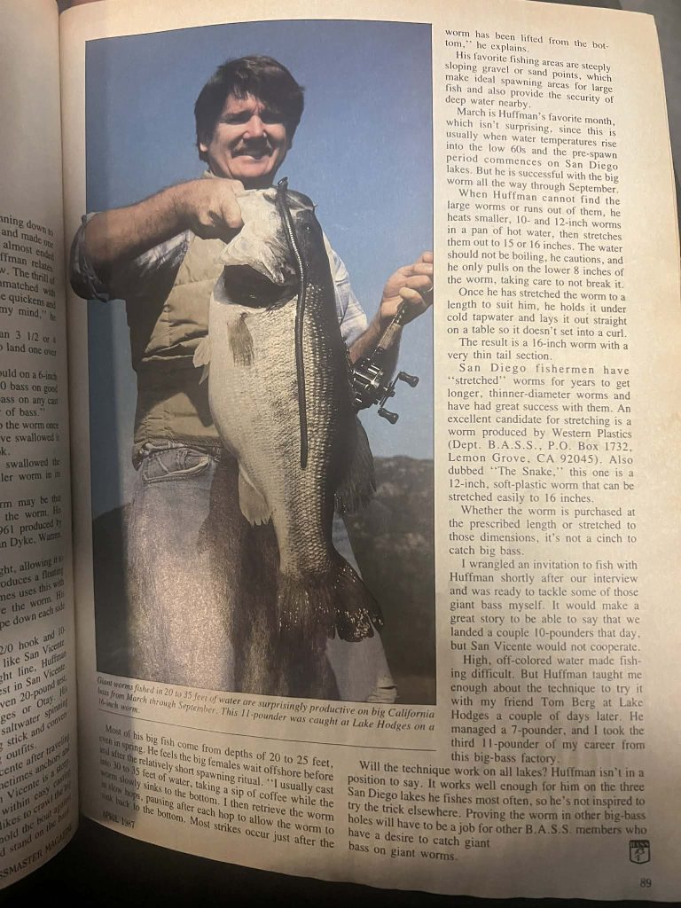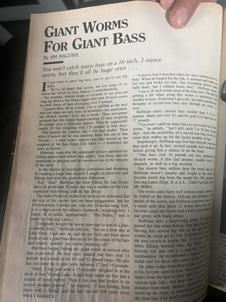 This article represents one of the most widely cited examples of oversized soft-plastic worms being intentionally used to target trophy bass. Its publication in Bassmaster—one of the most influential fishing periodicals in the United States—serves as independent verification of DeLong Lures’ role in early large-profile soft-plastic design.