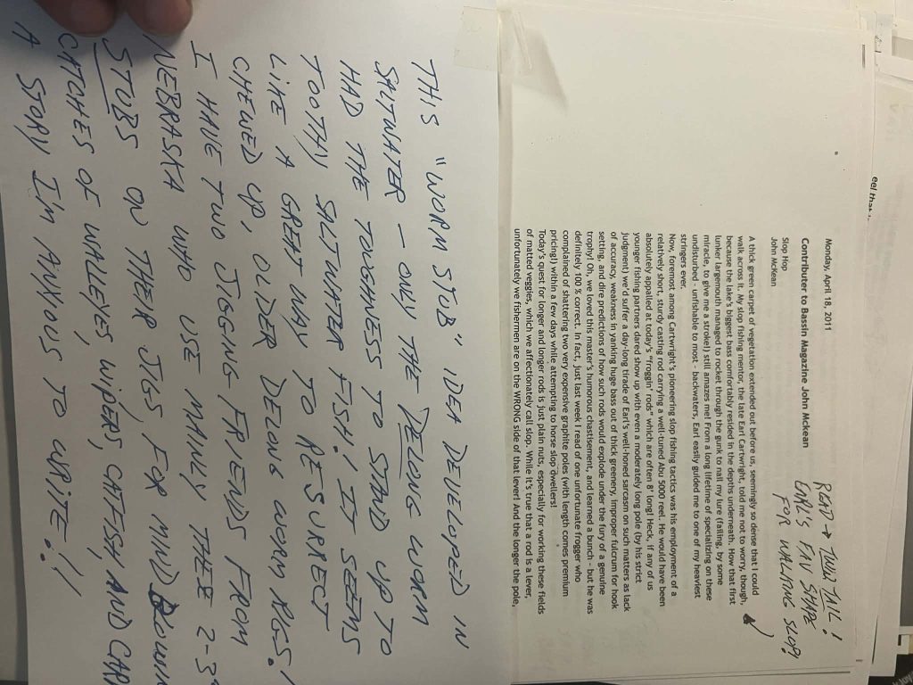 In addition to published articles, this archive includes handwritten notes, annotations, and unpublished materials that were transferred with DeLong Lures at the time of acquisition. These papers provide firsthand insight into how DeLong soft-plastic lures were used, evaluated, and discussed by an experienced angler and writer.