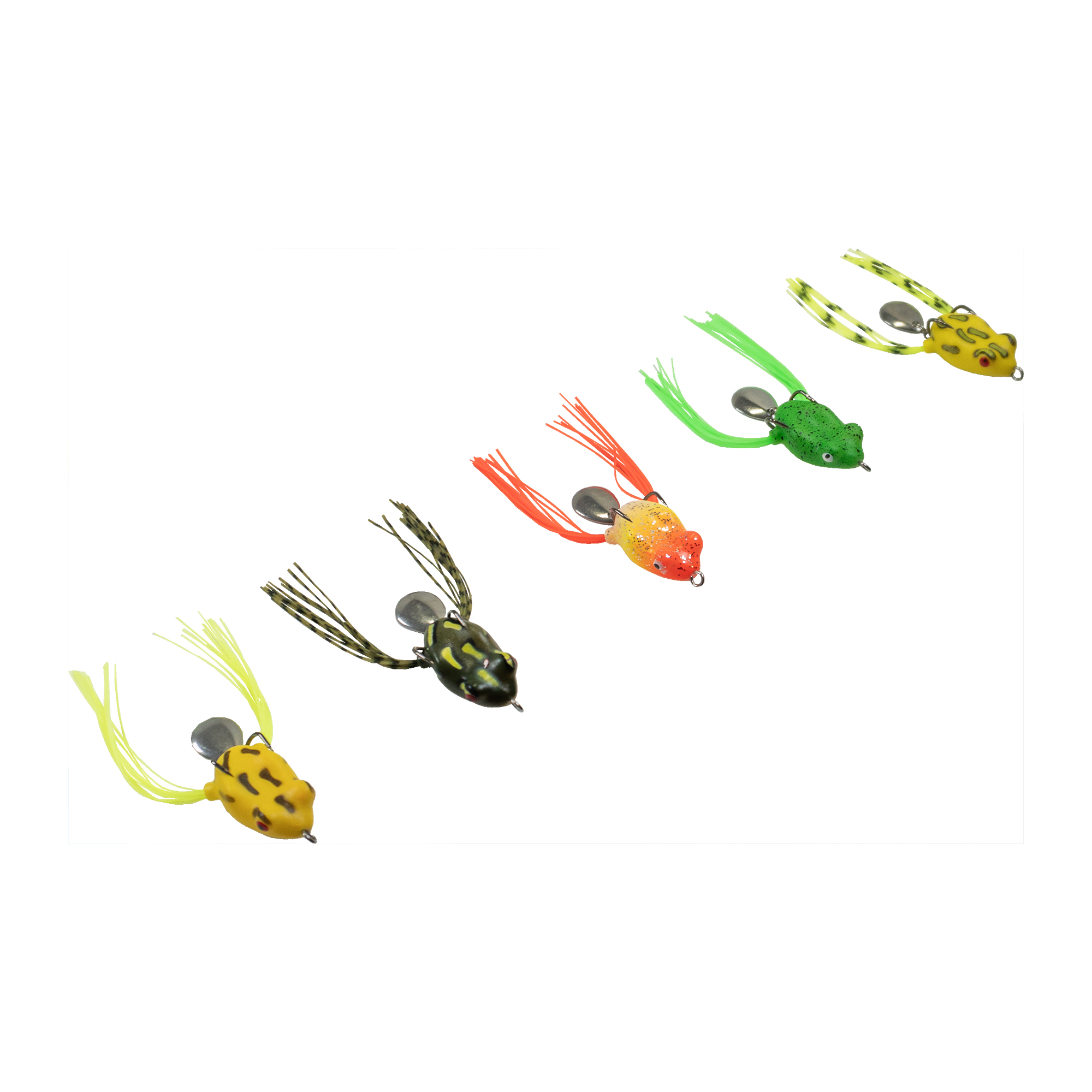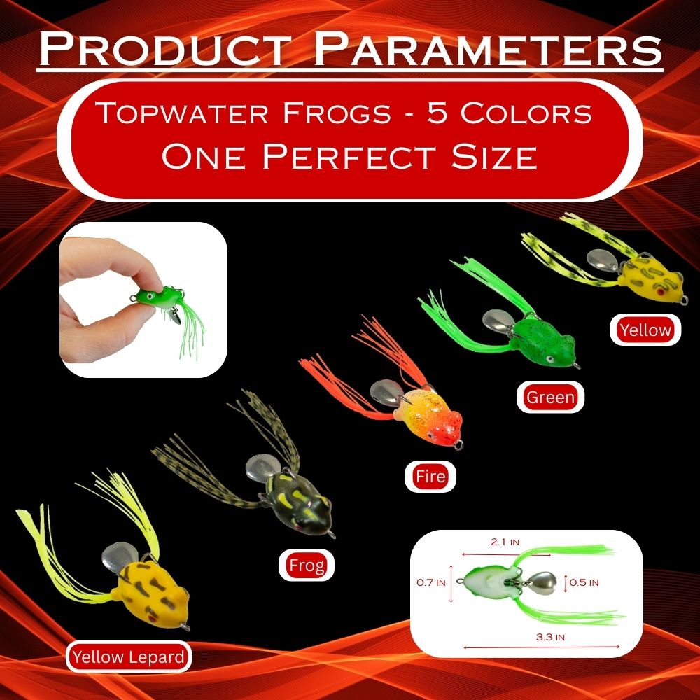 Q: What makes this bladed topwater frog different from other frogs?A: This frog combines a rear blade for surface disturbance with skirted legs on both sides for lifelike movement. Most frogs use either a blade or a skirt, but this design brings both together to create noise, motion, and realism in one bait.